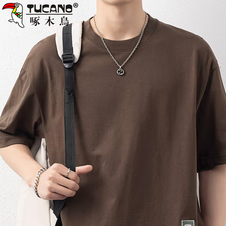 啄木鸟(TUCANO)短袖男士t恤圆领春夏季宽松高端打底衫上衣服男装 咖啡 XL